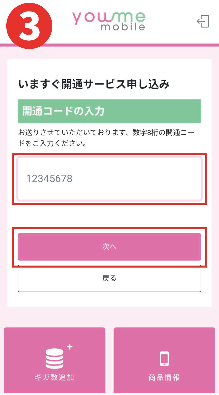 2. 2. 開通ボタンを押し、「開通コード」を入力する