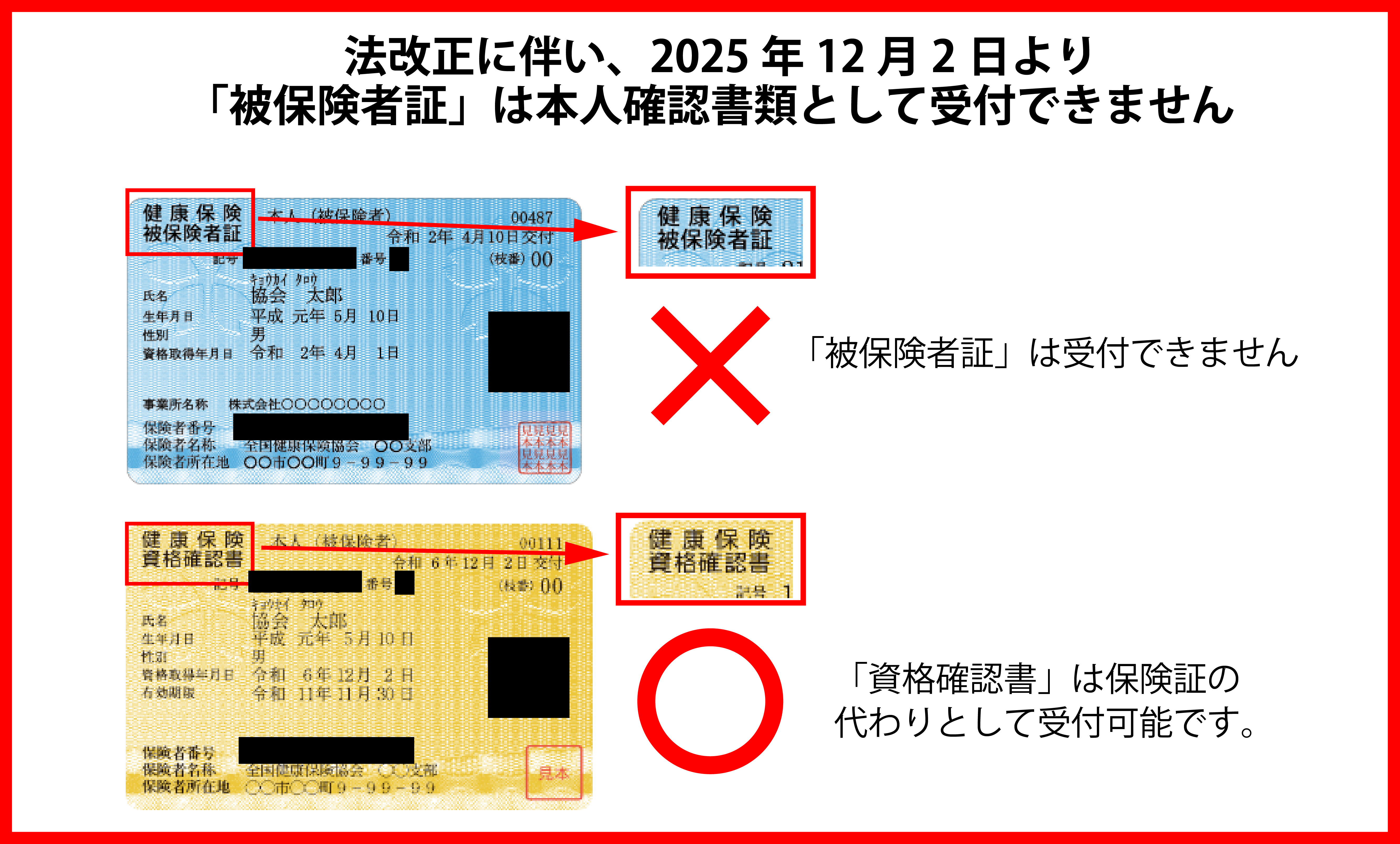 【重要】2025年12月2日から健康保険証は本人確認書類としてご利用いただけません